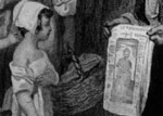 | Im 15. Jahrhundert änderte sich dies durch die Erfindung und ständige Optimierung von Reproduktionsverfahren. Sie ermöglichten die Produktion höherer Auflagen zu geringeren Kosten. Fortan waren Bilder im häuslichen Bereich nicht mehr ein Privileg allein der wohlhabenden Gesellschaftsschichten. |